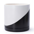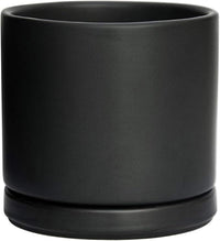 D'vine Dev Ceramic Planter Pot with Drainage Hole and Saucer, Indoor Cylinder Round Flower Pot, 4.6 Inch, Black, 94-O-B-2