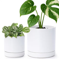 D'vine Dev 4.7 Inch & 6 Inch Ceramic Planter Pots for Plants with Drainage Hole and Saucer, Small Plant Pots Set, White, 94-G-S-1