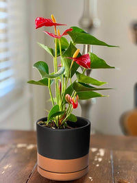 D'vine Dev Set of 2 Plants Pots, 4.6 Inch Ceramic Planter Pot for Plants with Drainage Hole and Saucer, Black/Speckled Tan, 94-V-B-7