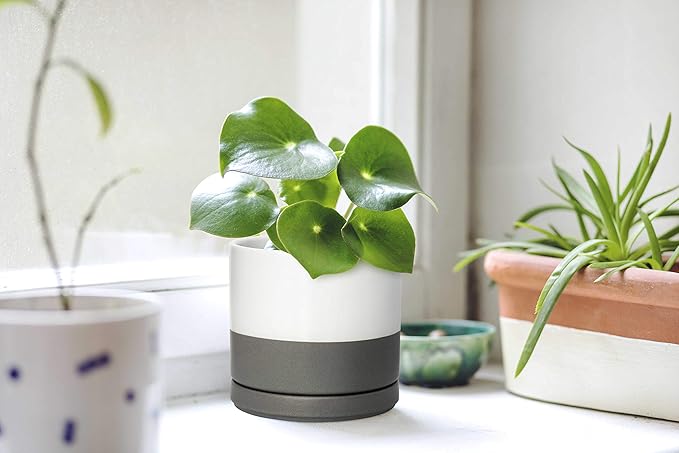 D'vine Dev 4.6 Inch & 6 Inch Ceramic Planter Pots for Plants with Drainage Hole and Saucer, Small Plant Pots Set, White/Speckled Grey, 94-G-S-6
