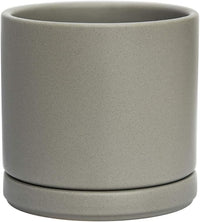 D'vine Dev Ceramic Planter Pot with Drainage Hole and Saucer, Indoor Cylinder Round Flower Pot, 4.6 Inch, Grey, 94-O-B-3
