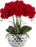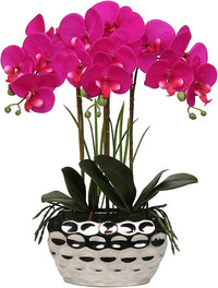 Briful Orchids Artificial Flowers 18" Purple Phalaenopsis Orchid with Silver Ceramic Pots Real Touch Faux Orchid Plant for Home Office Bathroom Living Room Wedding Decoration