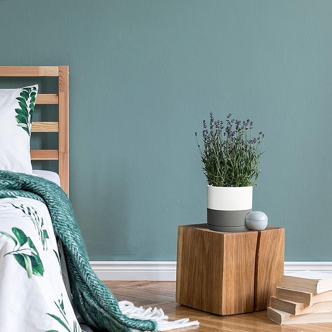 D'vine Dev Set of 2 Plants Pots, 6 Inch Ceramic Planter Pot for Plants with Drainage Hole and Saucer, White/Speckled Grey, 94-V-C-6