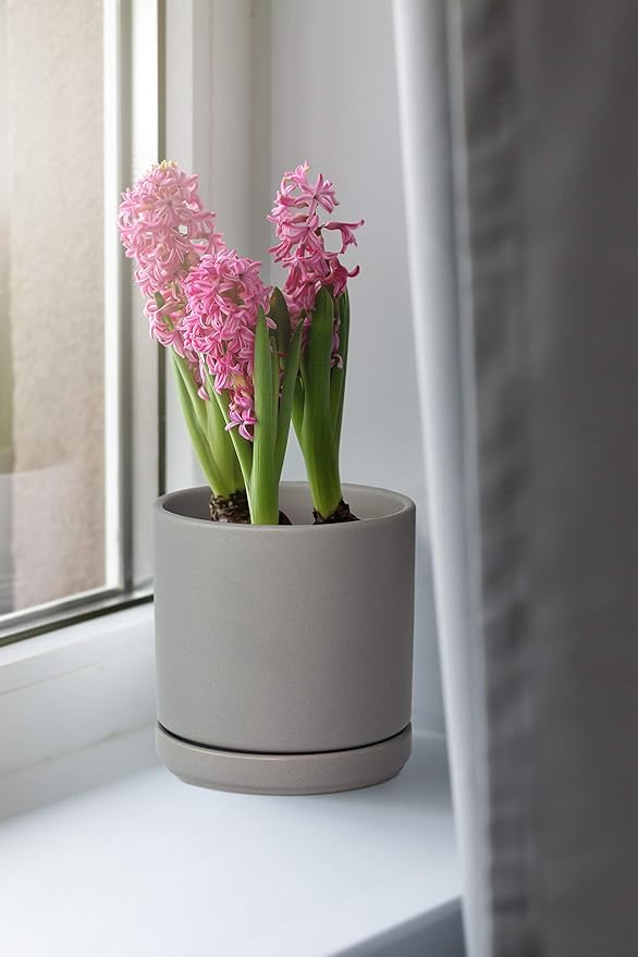 D'vine Dev Set of 2 Plants Pots, 6 Inch Ceramic Planter Pot for Plants with Drainage Hole and Saucer, Speckled Grey, 94-V-C-3