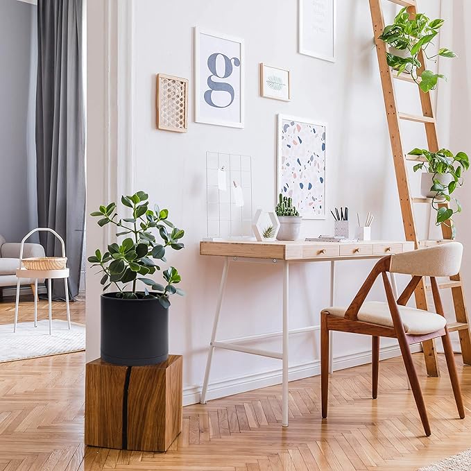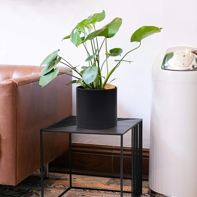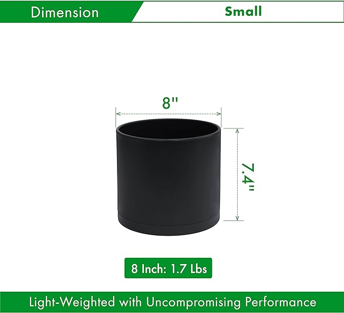 D'vine Dev 8 Inch Plastic Planter Pots for Plant Pot with Drainage Hole and Seamless Saucers, Black Color, 74-X-B-1