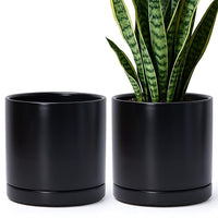 D'vine Dev Set of 2 Plants Pots, 8 Inch Ceramic Planter Pot for Plants with Drainage Hole and Saucer, Black, 94-V-D-2