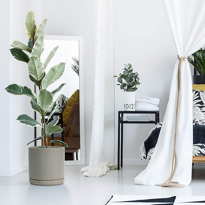 D'vine Dev Set of 2 Plants Pots, 10 Inch Ceramic Planter Pot for Plants with Drainage Hole and Saucer, Speckled Grey, 94-V-E-3