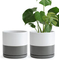 D'vine Dev Set of 2 Plants Pots, 10 Inch Ceramic Planter Pot for Plants with Drainage Hole and Saucer, White/Speckled Grey, 94-V-E-6