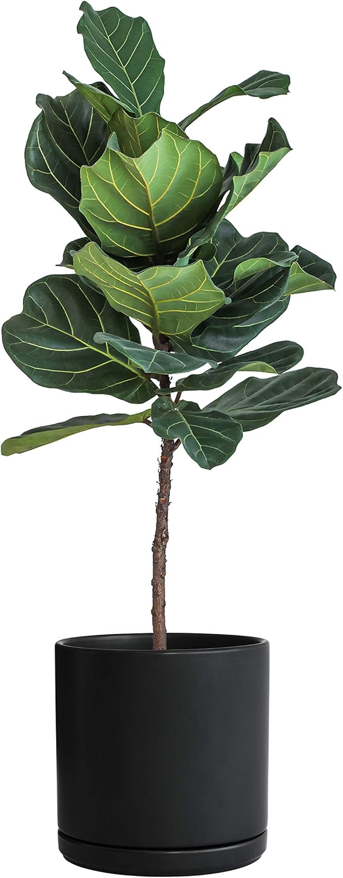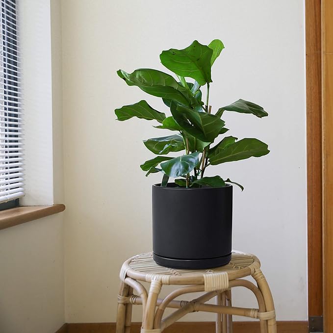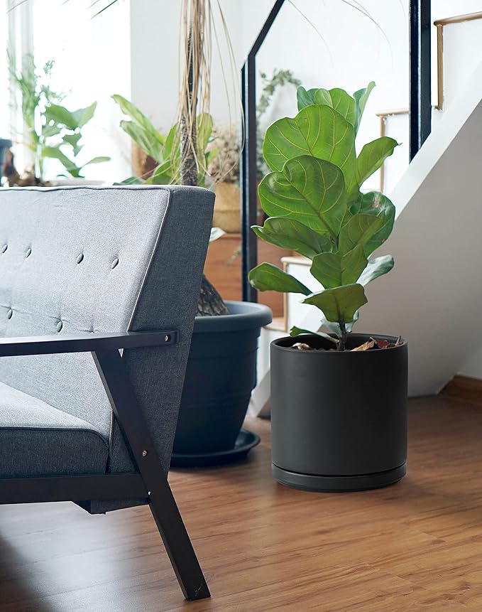 D'vine Dev Set of 2 Plants Pots, 10 Inch Ceramic Planter Pot for Plants with Drainage Hole and Saucer, Black, 94-V-E-2