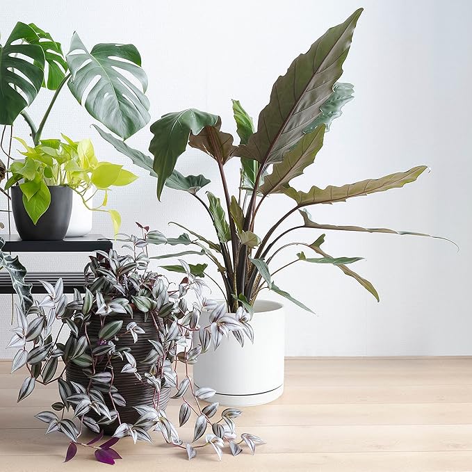D'vine Dev Set of 2 Plants Pots, 8 Inch Ceramic Planter Pot for Plants with Drainage Hole and Saucer, White, 94-V-D-1