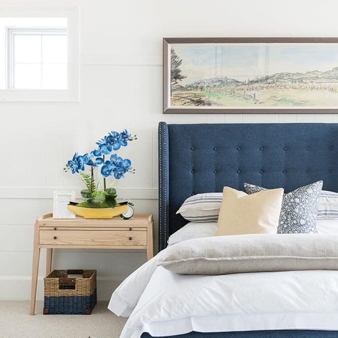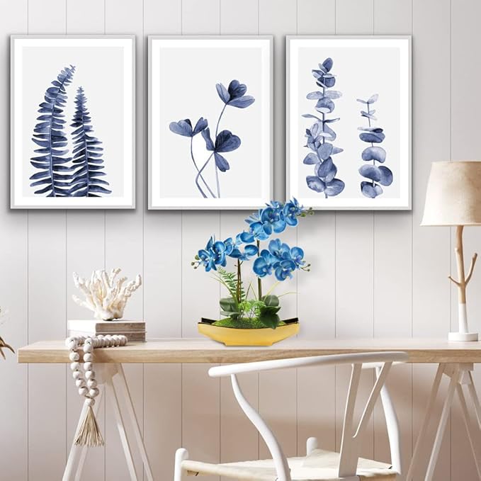 Briful Orchids Artificial Flowers 15" Blue Phalaenopsis Faux Orchid with Gold Pots Fake Orchid Fake Plant for Home Office Bedroom Christmas Table Wedding Party Decor