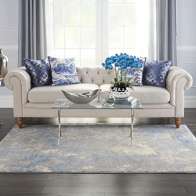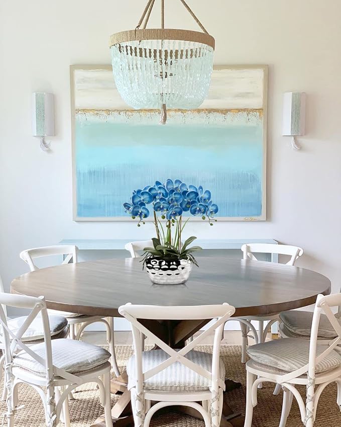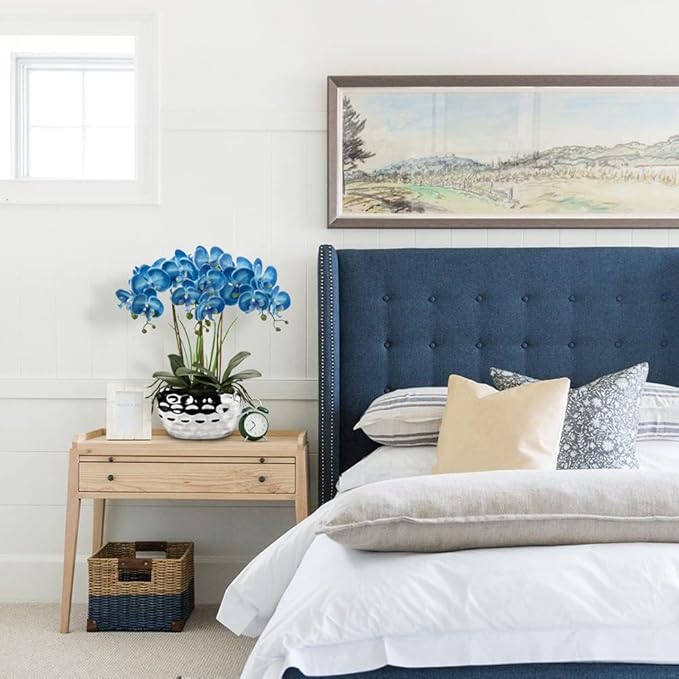 Briful Orchids Artificial Flowers 18" Blue Phalaenopsis Large Orchid with Silver Ceramic Pots Fake Orchid Flower for Home Office Bathroom Living Room Table Decoration