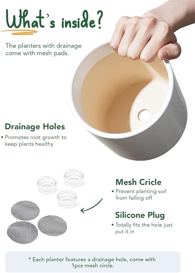 LE TAUCI Ceramic Pots for Plants, 10+8+6 Inch Indoor Plant Pots, Modern Planters for Indoor Plants Home Office, Cylinder Round Planters with Drainage Hole and Plug, Set of 3, White