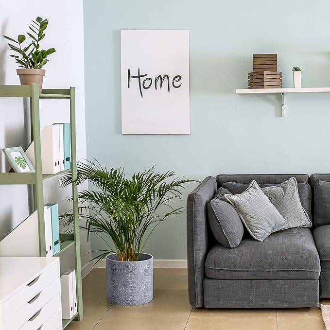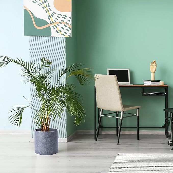 D'vine Dev 10 Inch Plastic Planter Pots for Plant Pot with Drainage Hole and Seamless Saucers, Speckled Gray Color, 74-X-G-2