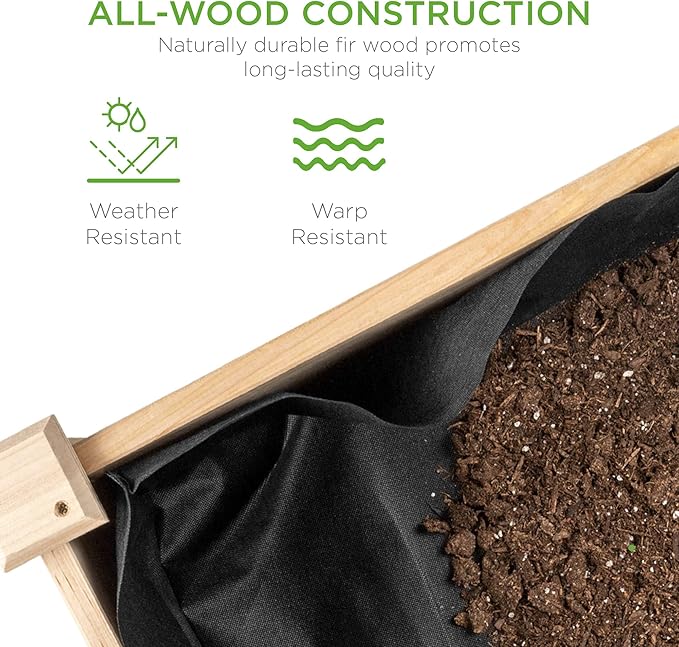 Best Choice Products 34x18x30in Raised Garden Bed, Elevated Wood Planter Box Stand for Kids, Backyard, Patio, Balcony w/Bed Liner, 150lb Capacity - Natural