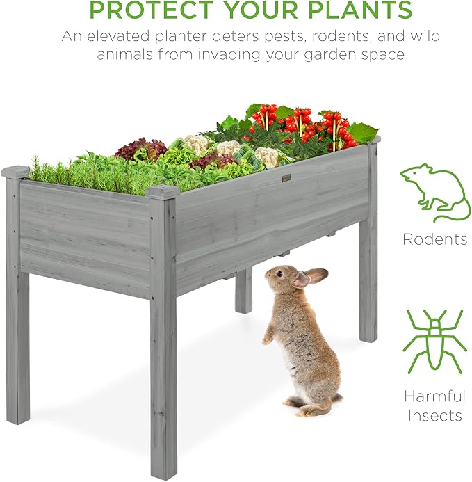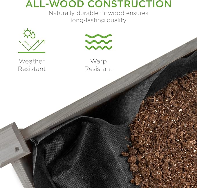Best Choice Products 48 x 24 x 30 Inches Raised Garden Bed, Elevated Wood Planter Box Stand for Backyard, Patio, Balcony with Bed Liner, 200 Pound Capacity - Gray