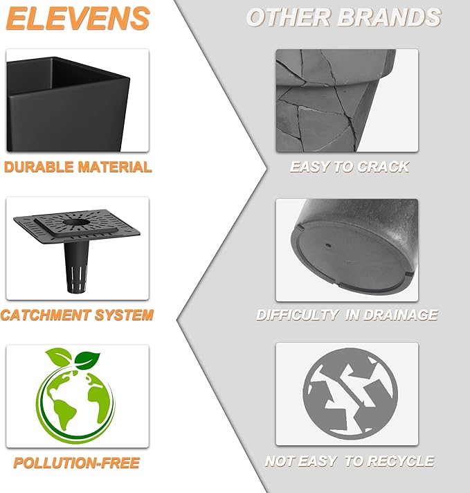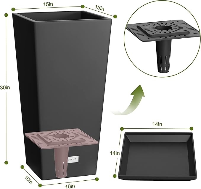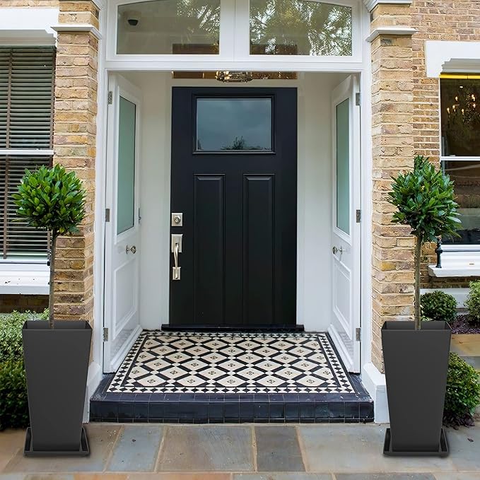 Elevens Outdoor Planter Larger Flower Pots Indoor Taper Garden V-Shape Tall Planters 29 inches Garden Pots Planter - Black(2 Packs)