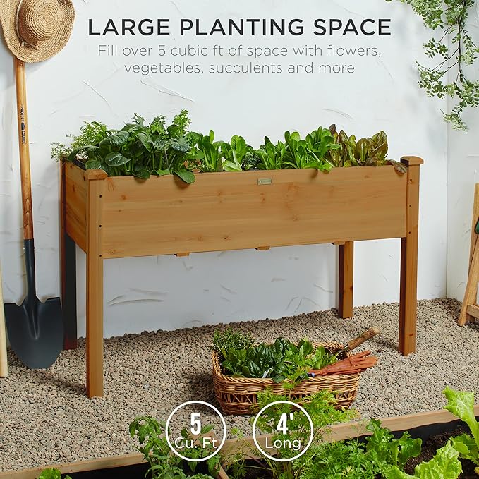 Best Choice Products 48 x 24 x 30 Inches Raised Garden Bed, Elevated Wood Planter Box Stand for Backyard, Patio, Balcony with Bed Liner, 200 Pound Capacity - Acorn Brown