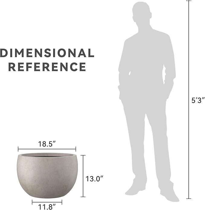 Kante 19.9" Dia Round Concrete Planter, Outdoor/Indoor Large Bowl Plant Pots with Drainage Hole and Rubber Plug for Garden Patio Balcony Home, Weathered Concrete