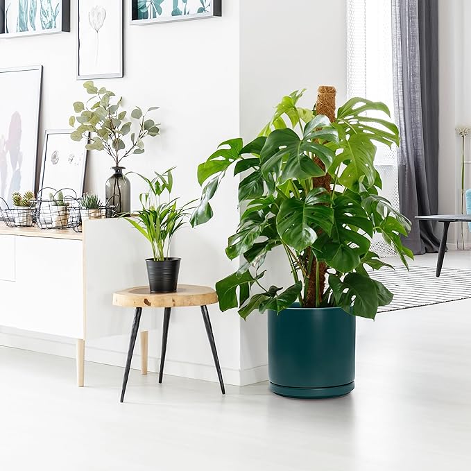 D'vine Dev Set of 2 Plants Pots, 10 Inch Ceramic Planter Pot for Plants with Drainage Hole and Saucer, Teal, 94-V-E-9