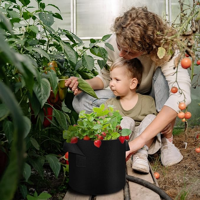 50 Pack 5 Gallon Plant Grow Bags, Breathable Felt Non-Woven Aeration Fabric Plant Grow Pots, Garden Planting Containers for Nursery Vegetable Flower Grow Bags with Handles (11.8x9.8inch)