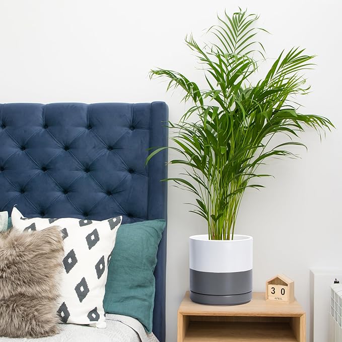 D'vine Dev 4 Inch & 6 Inch & 8 Inch, Set of 3 Round Ceramic Planter Pot with Drainage Hole and Saucer, White/Speckled Grey, 94-T-M-6