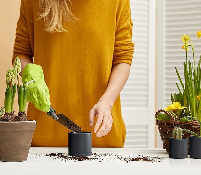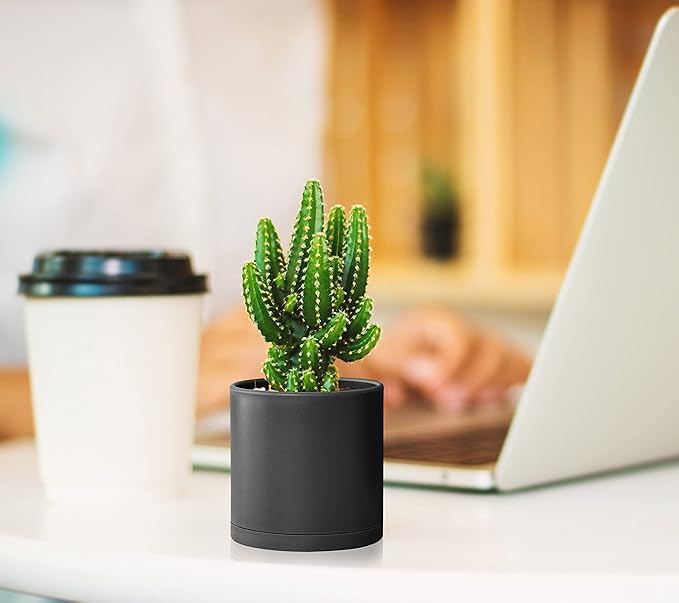 D'vine Dev 12 Pack 3 Inch Mini Plastic Plant Pots, Small Garden Planters for Plant with Drainage Holes and Saucers, Black Color, 74-Y-C-4