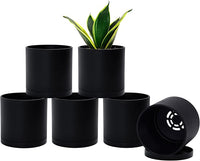 D'vine Dev 6 Pack 4.5 Inch Modern Plastic Plant Pots, Small Garden Planters for Plant with Drainage Holes and Saucers, Black Color, 74-Y-F-3