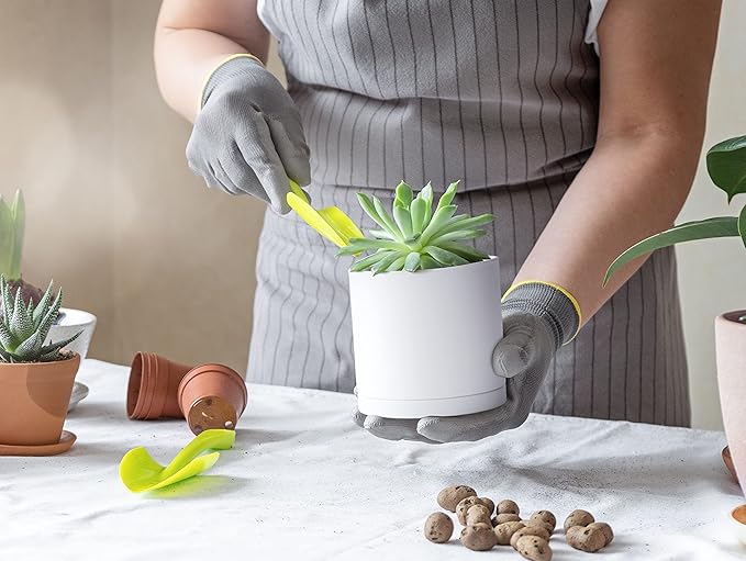 D'vine Dev 2 Pack 4 Inch Modern Plastic Plant Pots, Small Garden Planters for Plant with Drainage Holes and Saucers, White Color, 74-Z-E-1