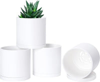 D'vine Dev 4 Pack 4 Inch Modern Plastic Plant Pots, Small Garden Planters for Plant with Drainage Holes and Saucers, White Color, 74-Z-E-2