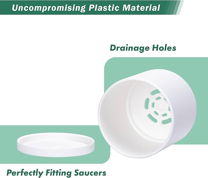 D'vine Dev 12 Pack 3 Inch Mini Plastic Plant Pots, Small Garden Planters for Plant with Drainage Holes and Saucers, White Color, 74-Z-C-4