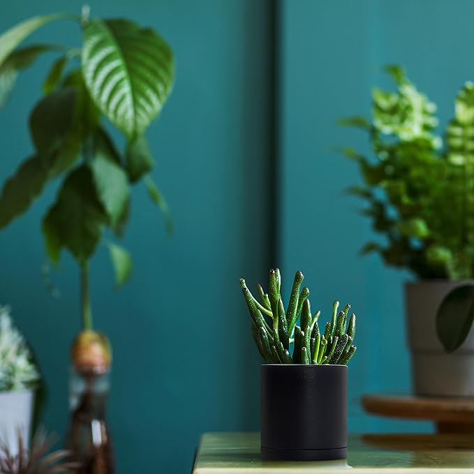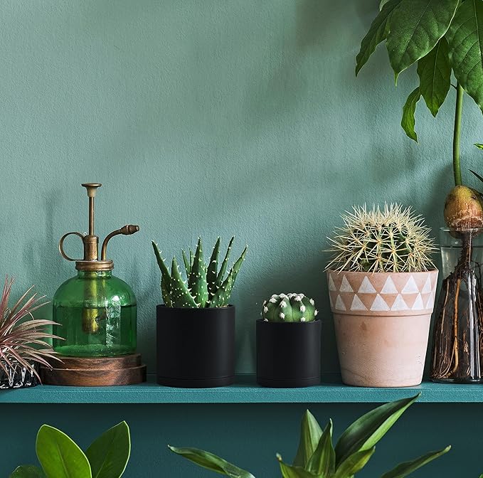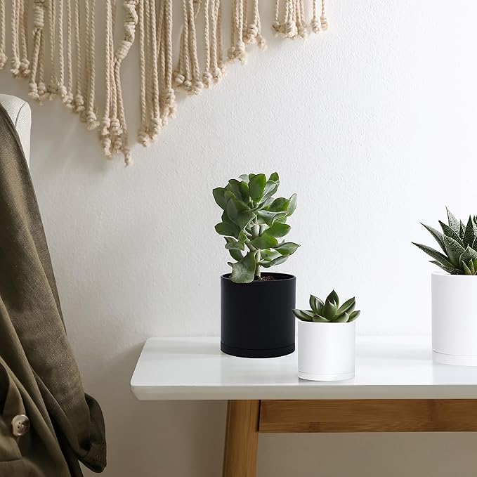 D'vine Dev 12 Pack 3.5 Inch Mini Plastic Plant Pots, Small Garden Planters for Plant with Drainage Holes and Saucers, Black Color, 74-Y-D-4