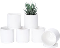 D'vine Dev 6 Pack 4.5 Inch Modern Plastic Plant Pots, Small Garden Planters for Plant with Drainage Holes and Saucers, White Color, 74-Z-F-3