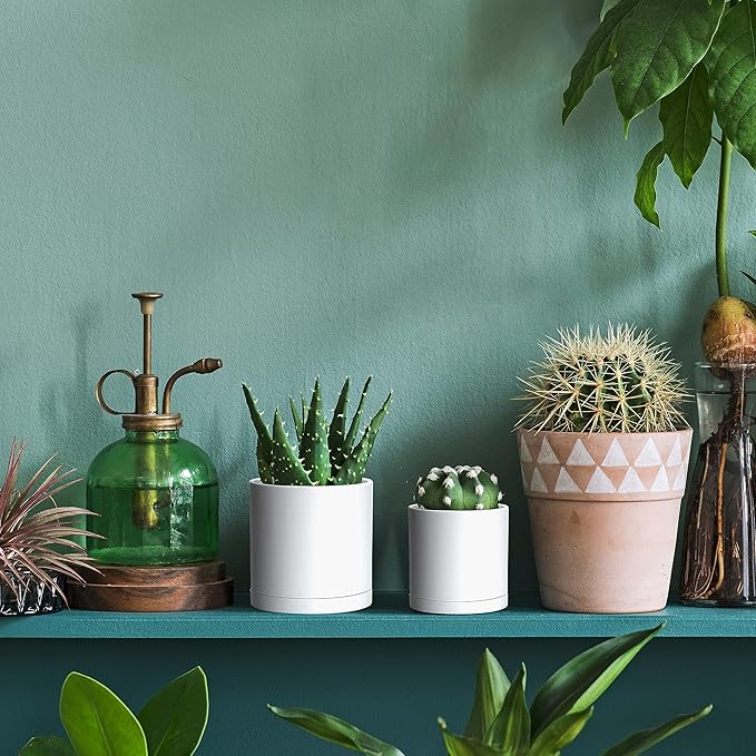 D'vine Dev 12 Pack 3.5 Inch Mini Plastic Plant Pots, Small Garden Planters for Plant with Drainage Holes and Saucers, White Color, 74-Z-D-4