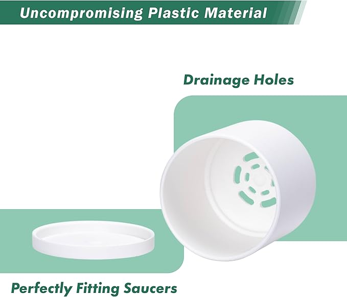 D'vine Dev 18 Pack 2.5 Inch Mini Plastic Plant Pots, Small Garden Planters for Plant with Drainage Holes and Saucers, White Color, 74-Z-B-5