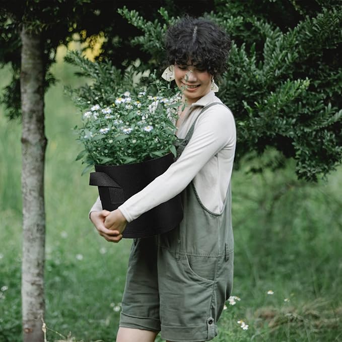 50 Pack 3 Gallon Plant Grow Bags, Breathable Felt Non-Woven Aeration Fabric Plant Grow Pots, Garden Planting Containers for Nursery Vegetable Flower Grow Bags with Handles (9.8x8.7nch)