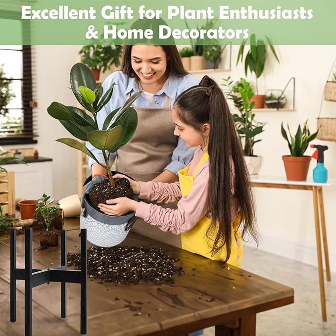 Planter with Stand Set of 2, Mid Century Plant Pots with Metal Legs Indoor, Modern Flower Pots with Drainage Holes, Decorative Garden Pot for Living Room, Office, Garden, or Balcony 10 & 12 inches