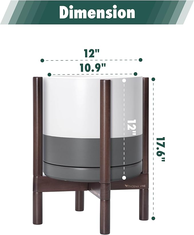 D'vine Dev Ceramic Planter with Walnut Color Stand - 12 Inch Modern Round Flower Pot with Wood Planter Holder, White/Grey, 55-B-W-6 Sale