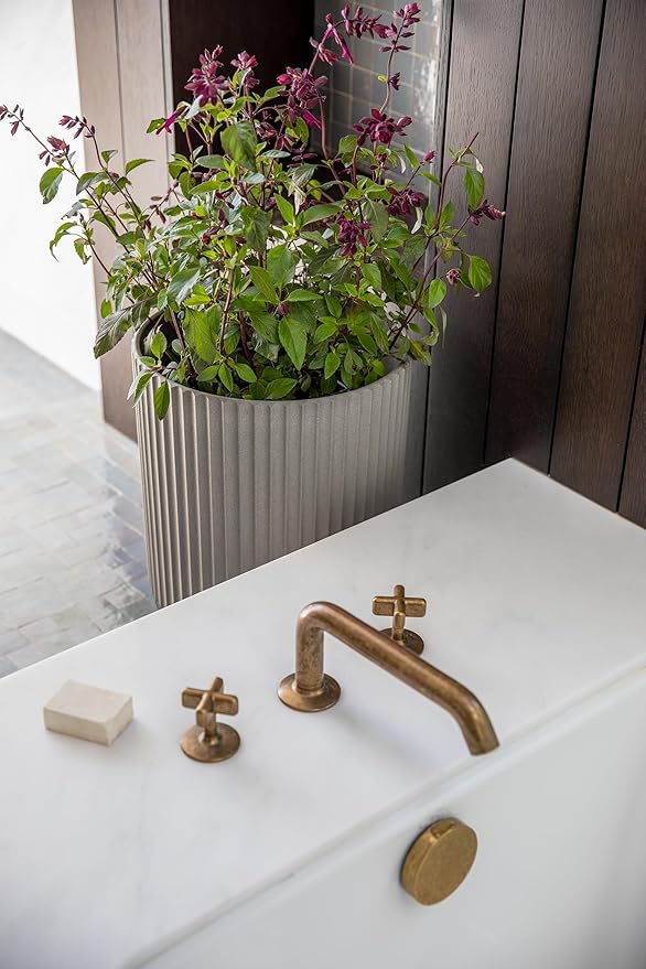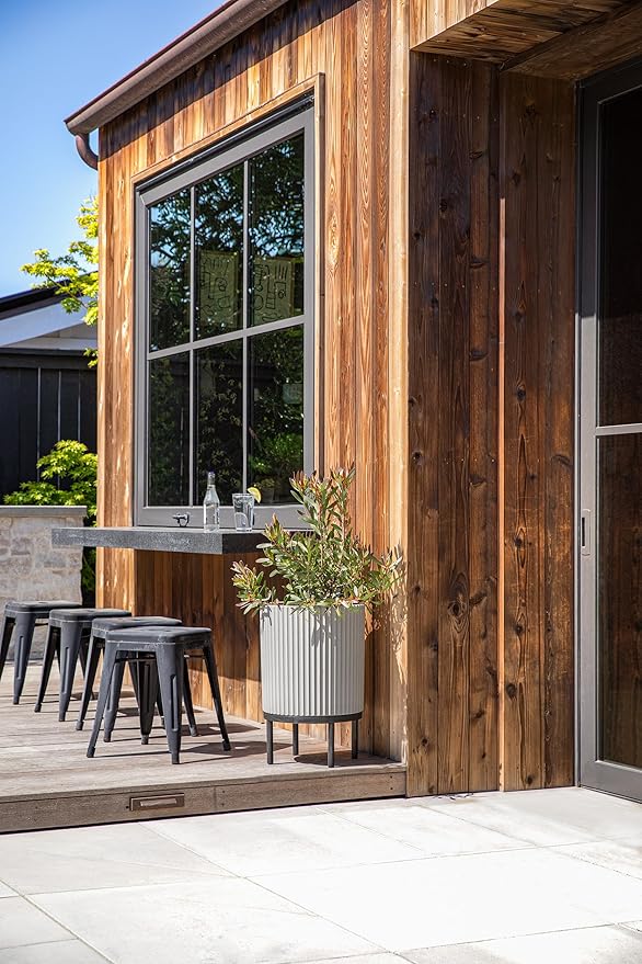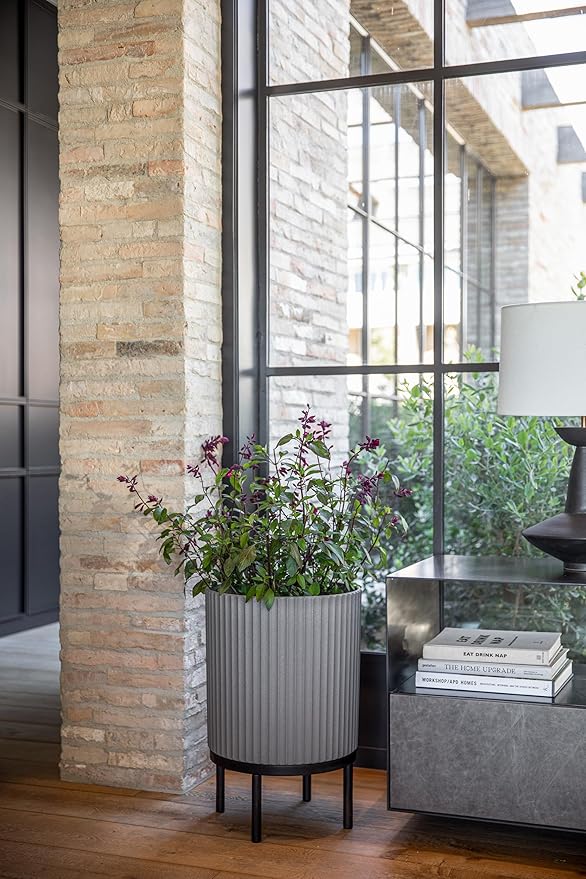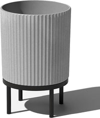 Veradek Demi Series Round Planter w/ Stand for Porch/Patio | Durable Plastic-Concrete & Wooden Stand | Modern Décor for Tall Plants, Flowers