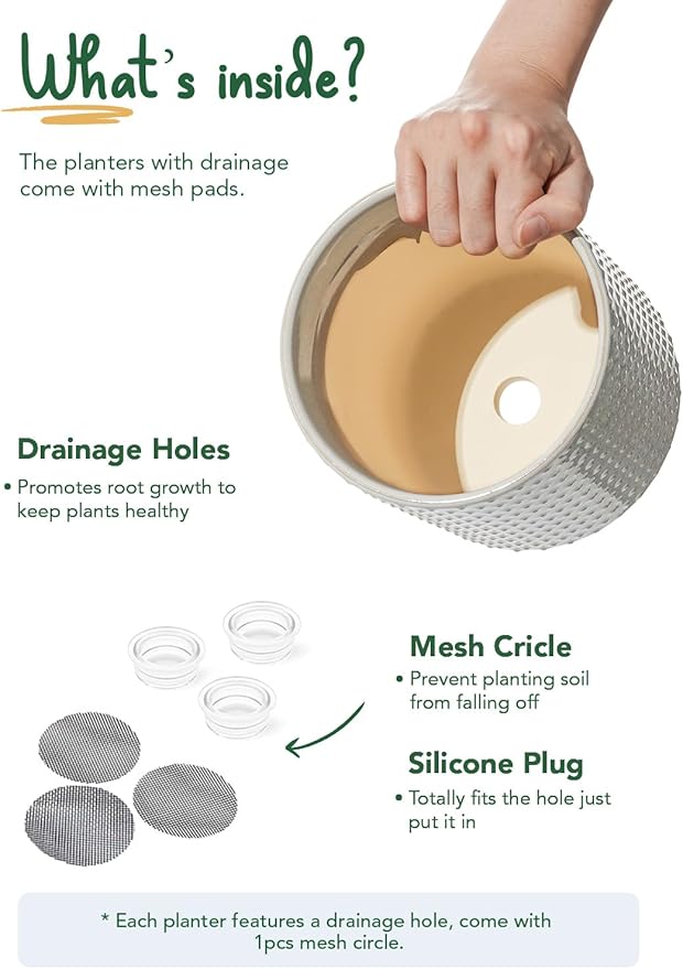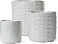 LE TAUCI Ceramic Plant Pots Indoor, 10+8+6 Inch Planters for Indoor Plants, Raised Dots Flower Pots with Drainage Hole and Plug, Cylinder Round Planters, Set of 3, Glaze Star Gray