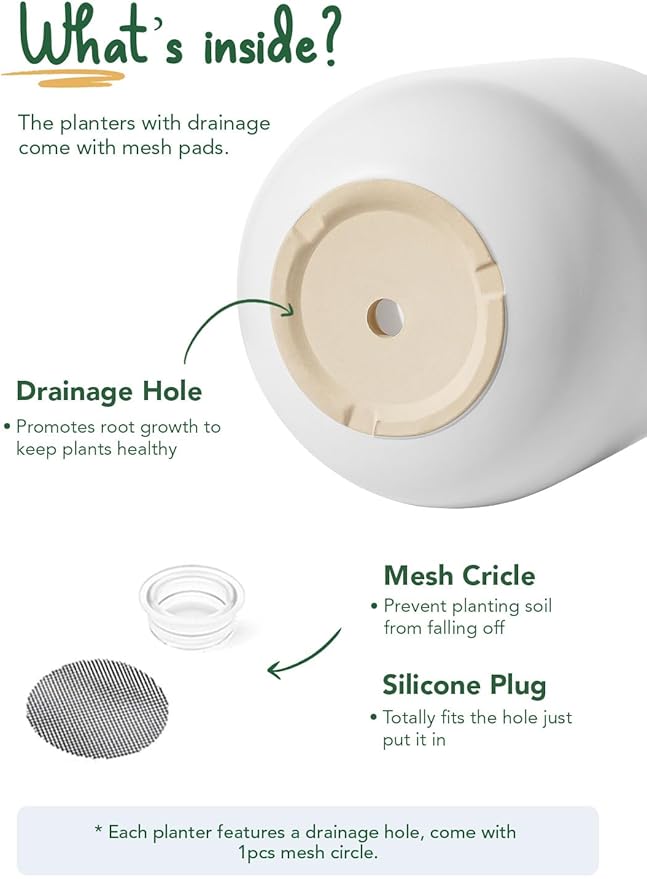 LE TAUCI 10 Inch Plant Pot, Ceramic Pots for Plants with Drainage Hole and Rubber Plug, Plant Pots Indoor for Olive Tree, Cylinder Planter Pot for Home Patio Office, White