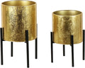 ARNIS Modern Plant Pots, Set of 2 Large Planters with Stand, Decorative Planters, Metal Pots with Drainage Holes for Living Room, Office, Garden or Balcony, 8.25 &10.5 Inch, Dark Cement Matte