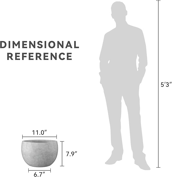 Kante 11.8" Dia Round Concrete Planter, Outdoor/Indoor Large Bowl Plant Pots with Drainage Hole and Rubber Plug for Garden Patio Balcony Home, Natural Concrete