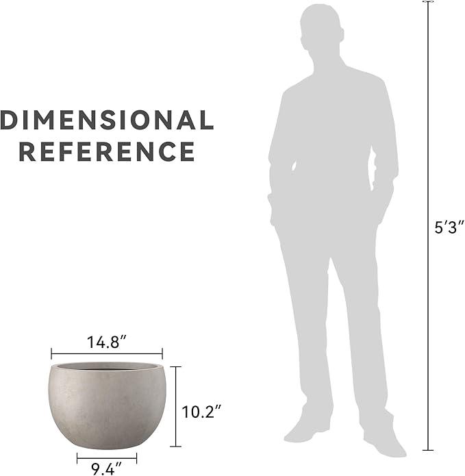 Kante 15.7" Dia Round Concrete Planter, Outdoor/Indoor Large Bowl Plant Pots with Drainage Hole and Rubber Plug for Garden Patio Balcony Home, Weathered Concrete