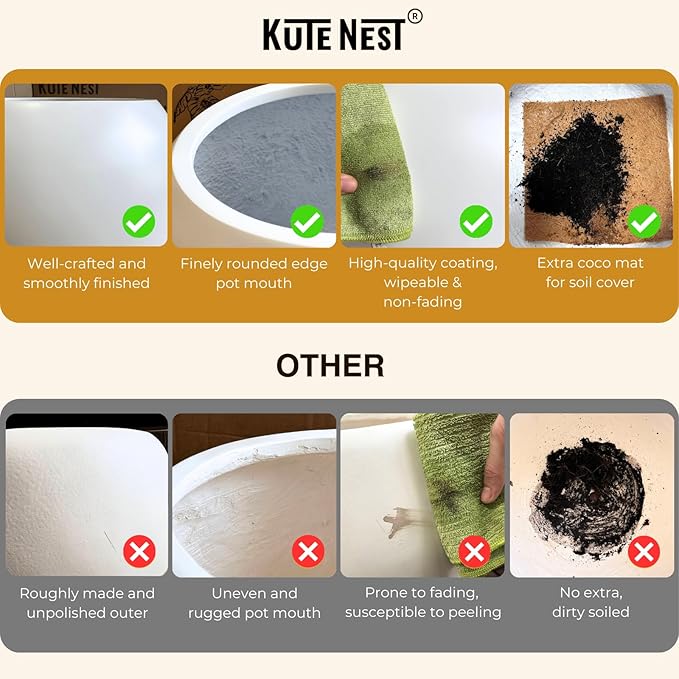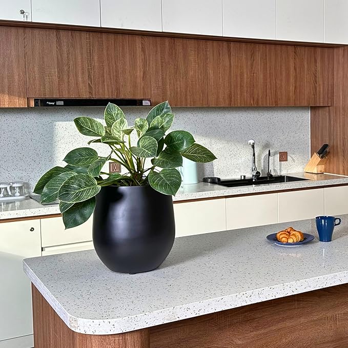 12.5" H x 11.4" D Corso Fiberstone Round Tapered Planter with Drainage Hole, Smooth Finishes, Weather Resistant for Indoor and Outdoor Use, Included 2 Extra Coco Mats (Black, 9" Pot Opening)