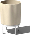 Veradek Demi Series Round Planter w/Stand for Porch/Patio | Durable Plastic-Stone Composite & Wooden Stand | Modern Décor for Tall Plants, Flowers