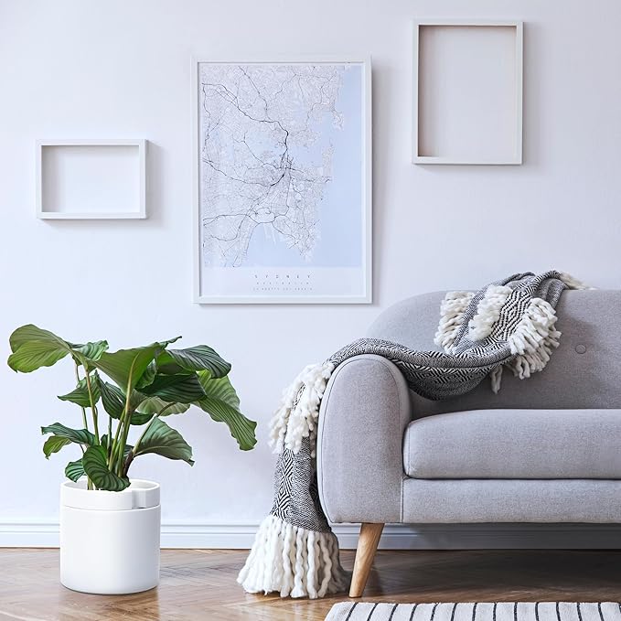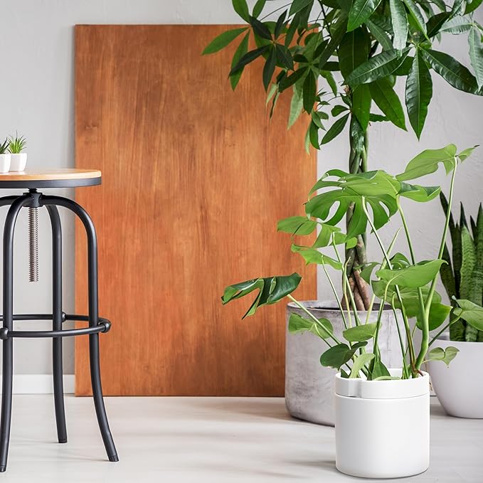 Phoenix Vine 10 Inch Cylinder Self Watering Planter, White Glazed Outer Plant Pot with Dolomite Clay Inner Planter for Indoor Plants, White, 31-A-I-W