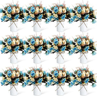 Domensi 12 Sets Wedding Centerpiece for Table Artificial Rose with Vase Fake Bouquets and Metal Pot Floral Arrangements for Holiday Party Event Table Decor (Teal)