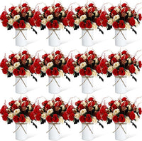 Domensi 12 Sets Wedding Centerpiece for Table Artificial Rose with Vase Fake Bouquets and Metal Pot Floral Arrangements for Holiday Party Event Table Decor (Red,Champagne)