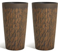 Worth Garden 22.5" H. Plastic Planters - Set of 2 Vintage Brown Tall Conical Plant Pots for Indoor Outdoor Use - Decorative Lightweight Flower Pots for Front Porch, Patio, Deck - 12.5" Dia x 22.5" H